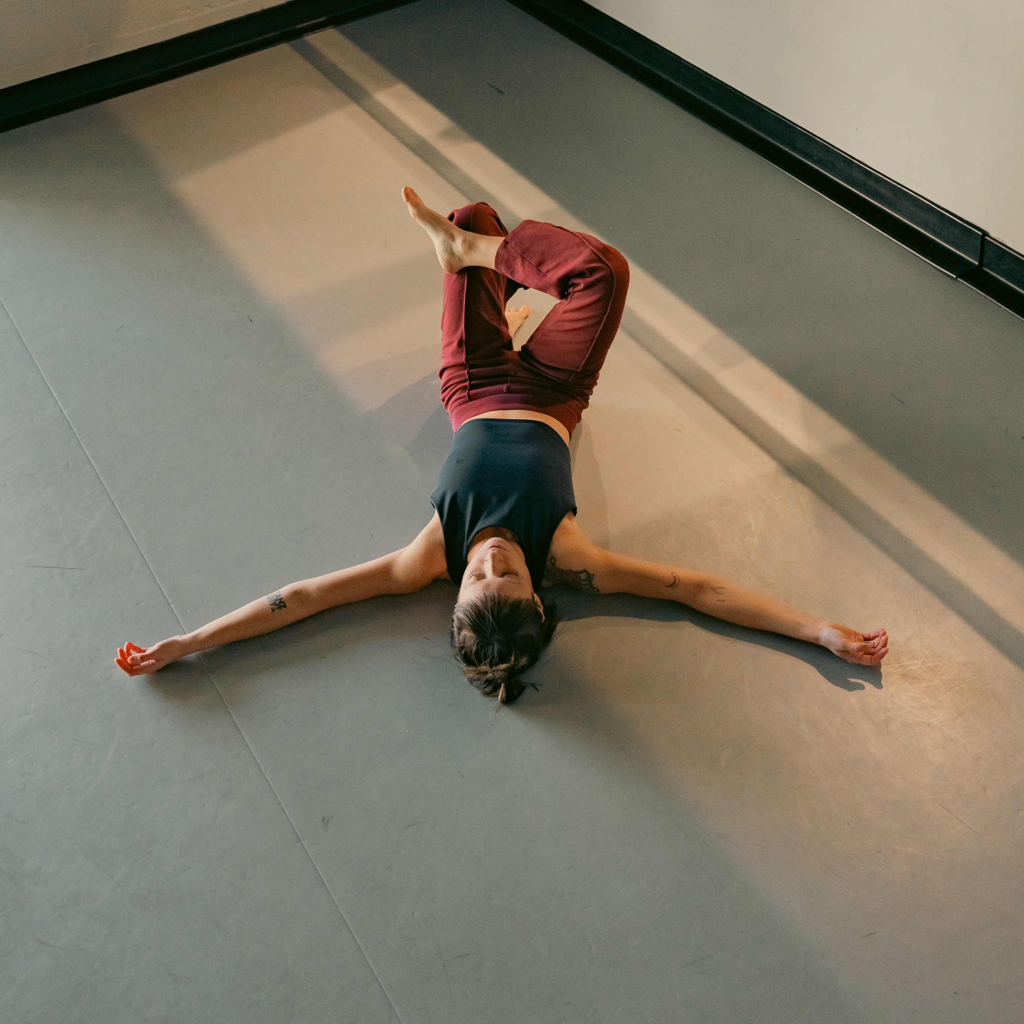 You lie on the floor throughout the entire session, so choose a comfortable outfit, and a mat is not mandatory. I utilize a guidance technique developed by Alexandre Munz to teach MUNZ FLOOR® to people who, because they’re lying down, have no eye contact with the teacher and other participants. Because actions speak louder than exercise demos, you’ll learn more details and a lot faster, making MUNZ FLOOR® a dynamic meditation in motion and empowering learning experience.